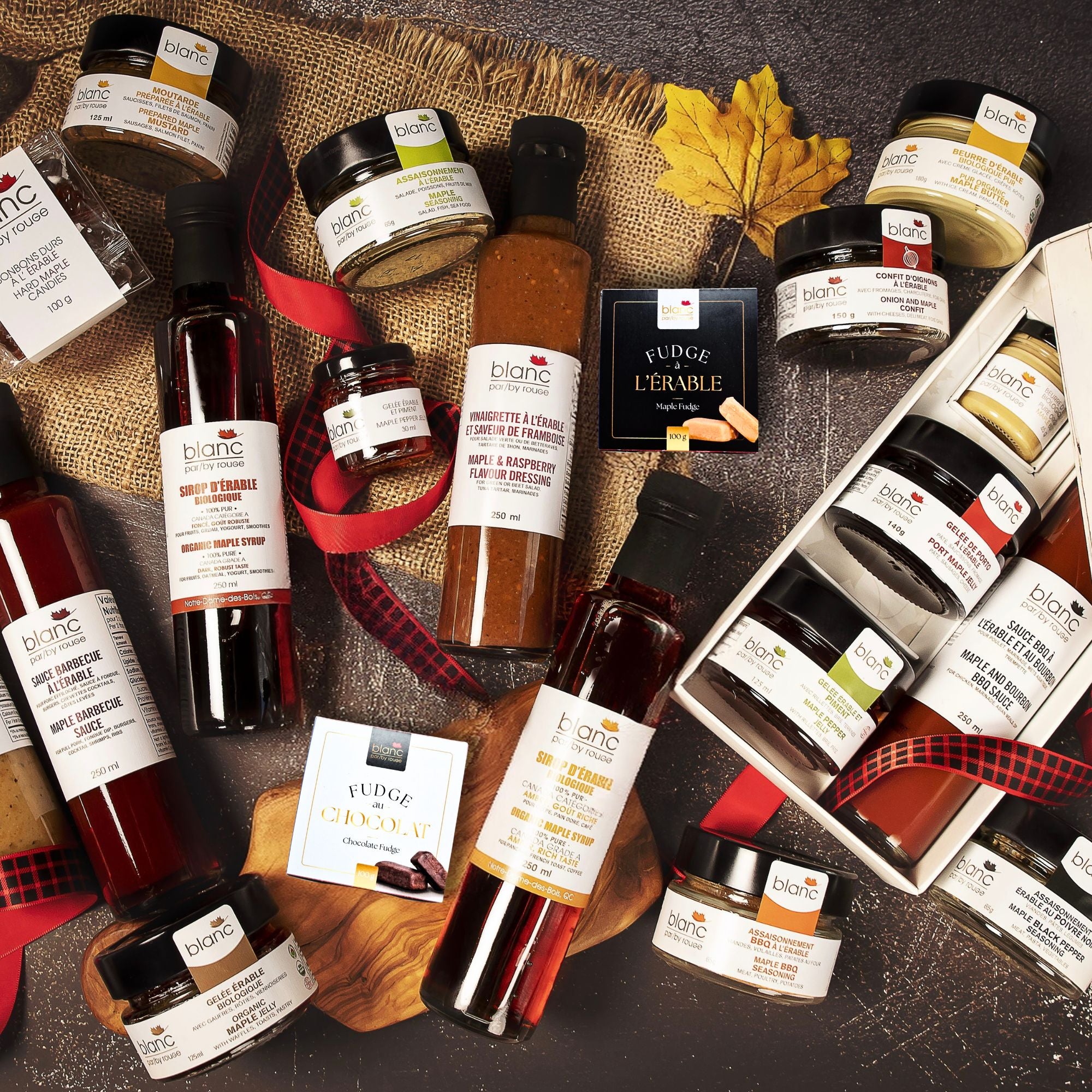 blanc par rouGe est une entreprise familiale québécoise offrant des produits inspirés de l'érable dédiés aux cadeaux corporatifs.