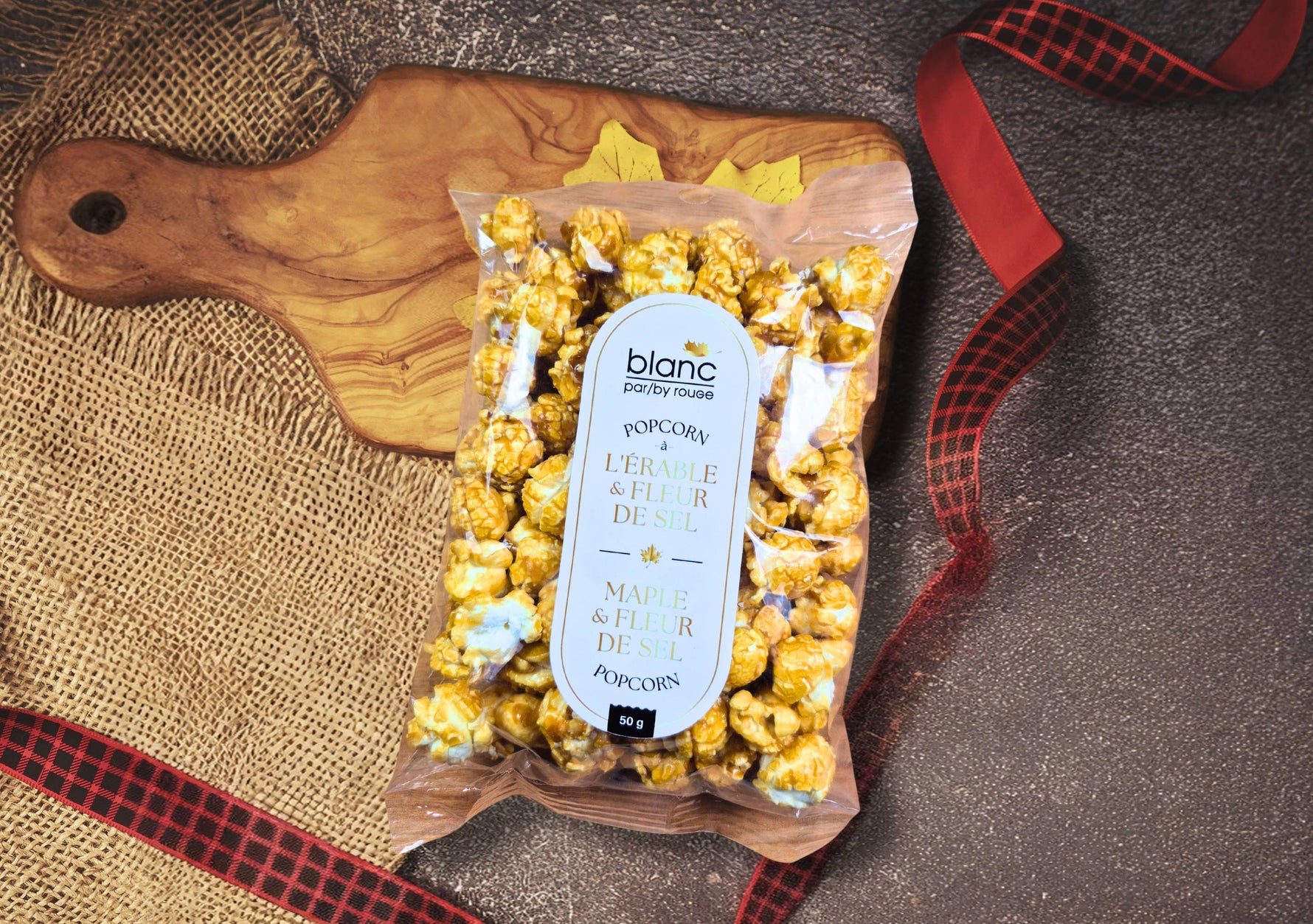 Dans une jolie boîte blanche soigneusement ornée d’un ruban, on découvre un assortiment de douceurs à l’érable qui éveillent les papilles.