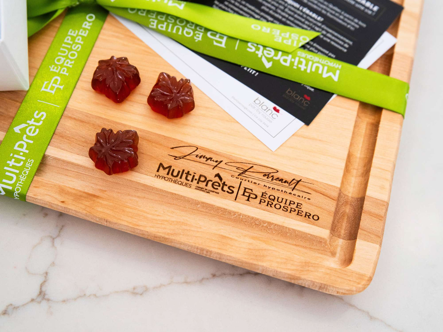 Give a maple wood cutting board, made here with local wood, personalized with your high-quality, durable laser-engraved logo.