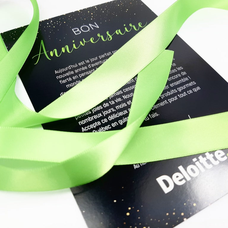 Add a unique touch to your gift boxes with our custom satin ribbon, 7/8 inch wide. This accessory helps to highlight your brand image and provides an elegant finish to your gifts.