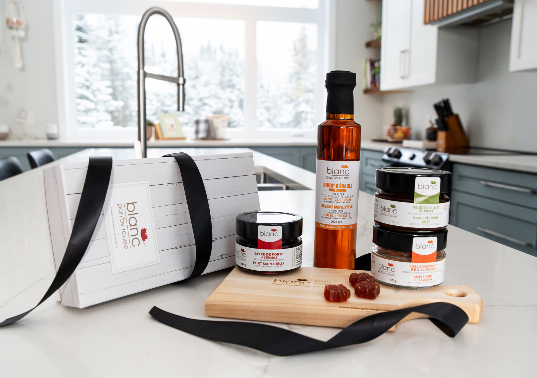 Montreal, February 24, 2025 – Quebec products continue to shine internationally. The biggest celebrities on the planet, such as Demi Moore, Ariana Grande, Guy Pearce, and Felicity Jones, will receive a unique gourmet gift set designed by blanc par rouGe. The gift set, which includes organic maple syrup and a personalized cutting board made of Quebec maple wood, embodies the quality and authenticity of Quebec products, while also supporting important social initiatives.