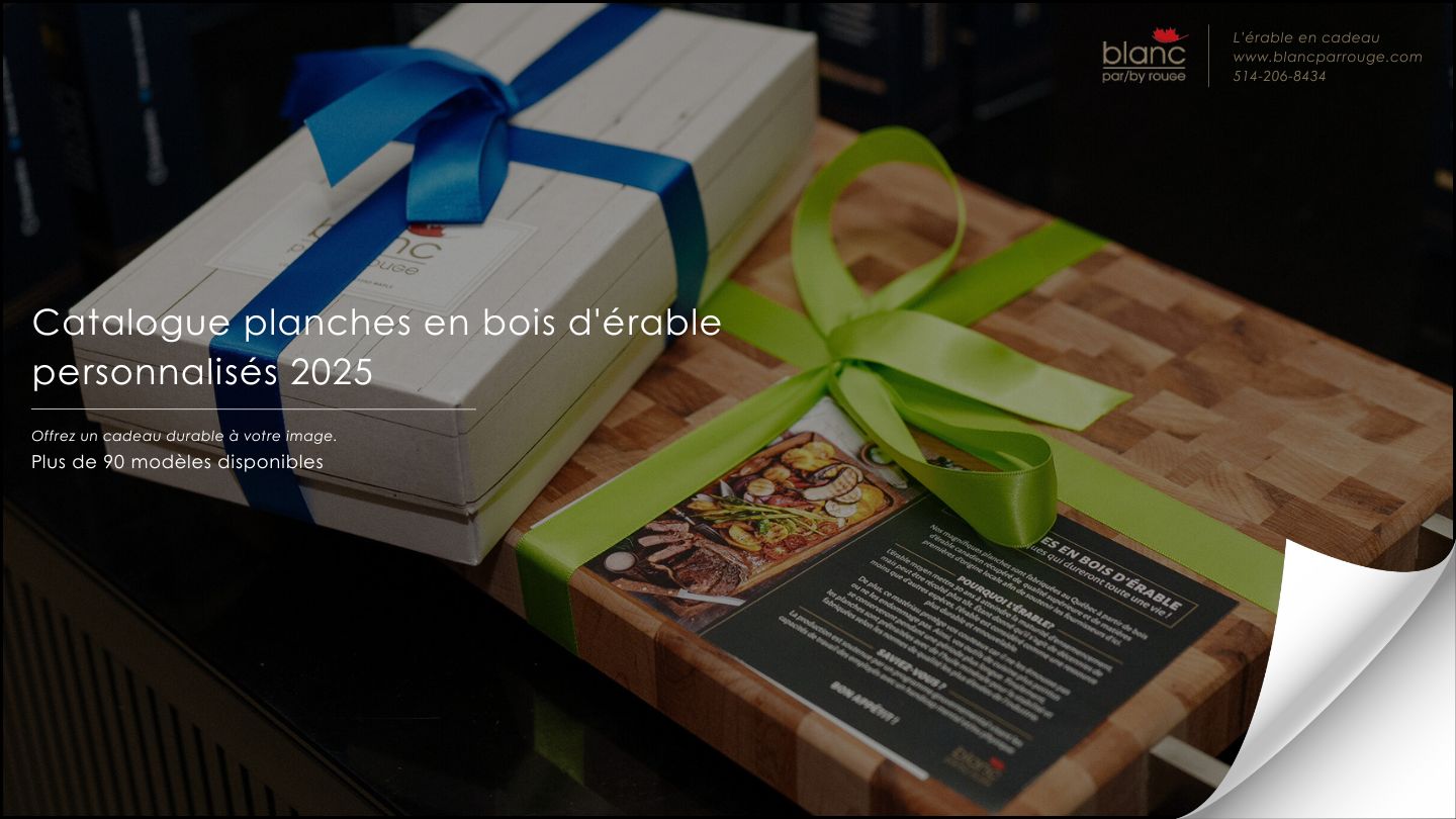 Catalogue cadeaux corporatifs gourmets et Catalogue de planches en bois d'érable